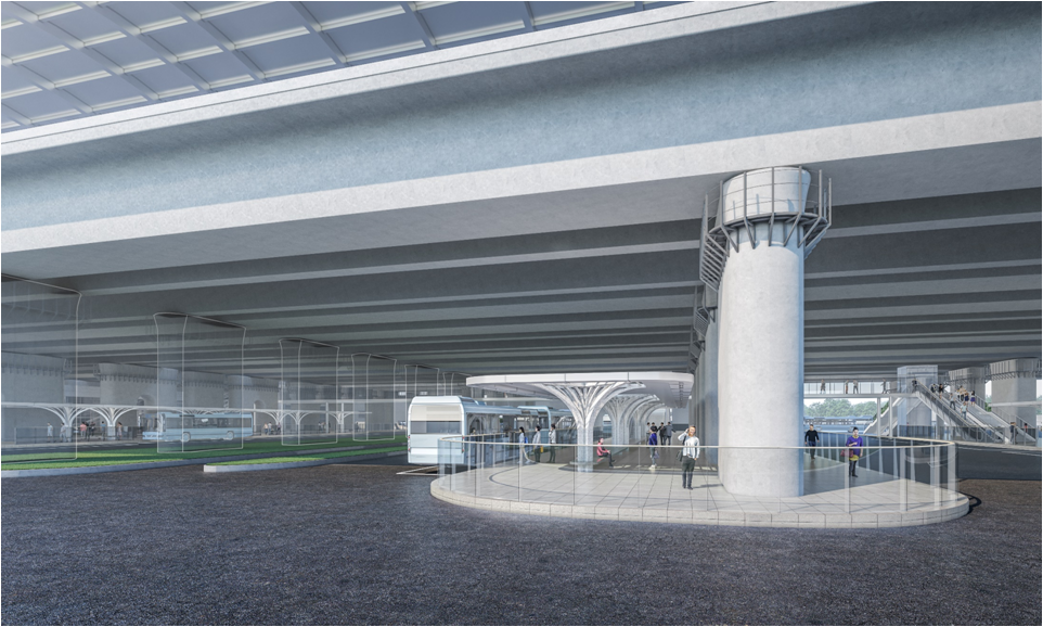 本項目位于臺州站南、北側(cè),含公交車場和出租車場兩部分。公交車場約29936㎡(其中:公交車場27018㎡、候車廳2277㎡、管理用房641㎡),公交車位48個;出租車場約5082㎡(車場4484㎡、候車廳598㎡),出租車位57個??偨ㄖ娣e3516㎡,公交、出租候車廳為鋼框架結(jié)構(gòu),管理用房為鋼砼框架結(jié)構(gòu)。候車廳與候車站臺間設(shè)置鋼桁架人行天橋102.5m/1座,結(jié)合天橋分別設(shè)置自動扶梯和垂直電梯。項目建成后,將提升臺州站整體形象,改善市民公交車的乘坐體驗,并在一定程度上緩解公交集團場站不足的窘境。