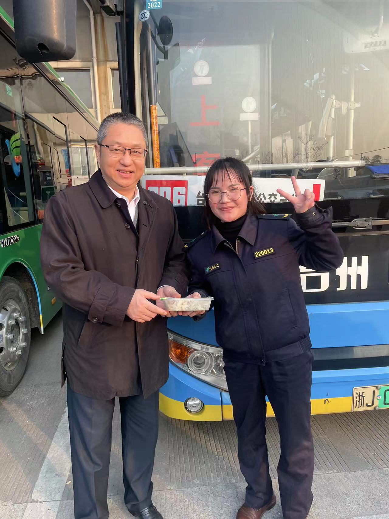 “祝大家新年快樂,先吃點(diǎn)餃子墊墊肚子,等下年夜飯就送到了?!表n克華一行來到路橋一車隊(duì)場站關(guān)切地詢問駕駛員的節(jié)日工作安排和家庭過節(jié)情況,對他們“舍小家,為大家”的高尚情操和敬業(yè)精神表示贊賞,對大家為公交高質(zhì)量發(fā)展作出的無私奉獻(xiàn)表示感謝!希望堅(jiān)守崗位期間保持良好的精神狀態(tài),提供準(zhǔn)時(shí)準(zhǔn)點(diǎn)的優(yōu)質(zhì)服務(wù),要合理安排好休息,同家人們過一個幸福的節(jié)日。