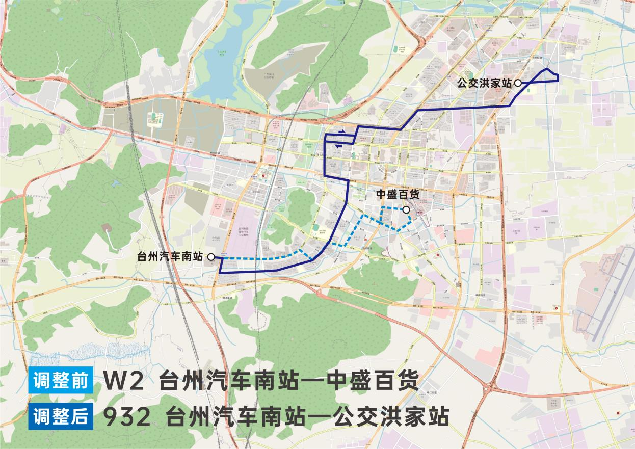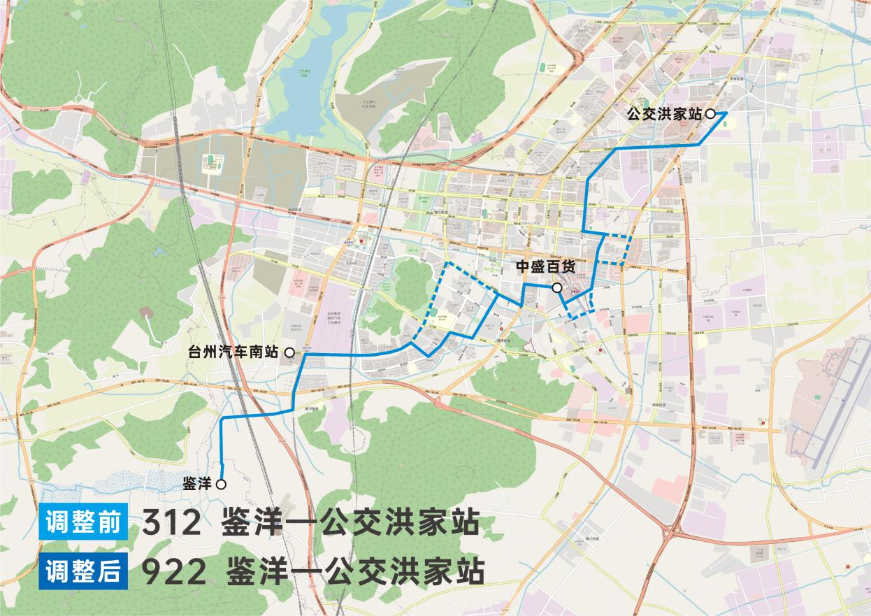 由“臺(tái)州汽車南站—中盛百貨”變更為“臺(tái)州汽車南站—公交洪家站”。
