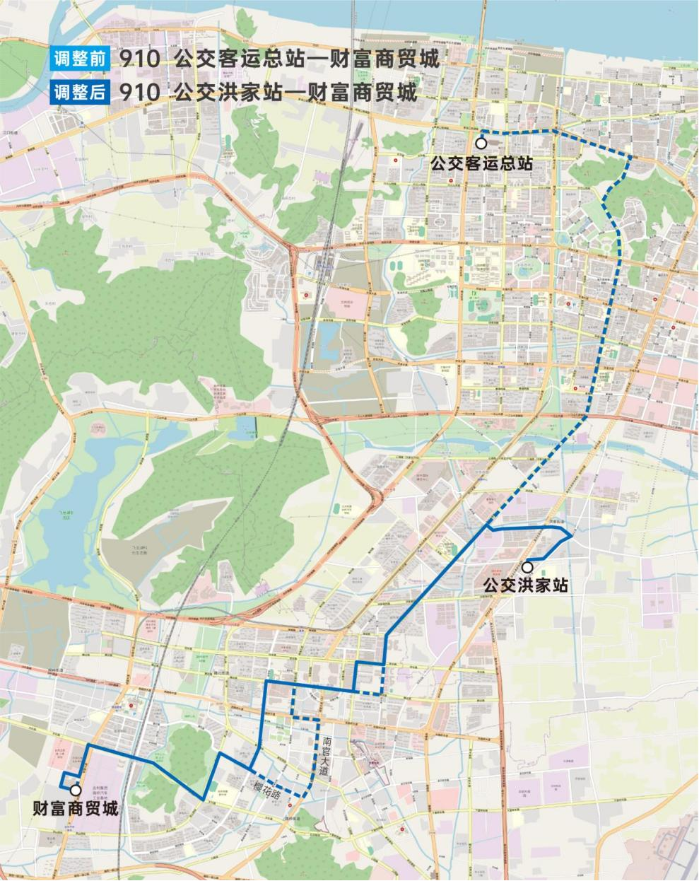 由“公交客運(yùn)總站—財(cái)富商貿(mào)城”變更為“公交洪家站—財(cái)富商貿(mào)城”。