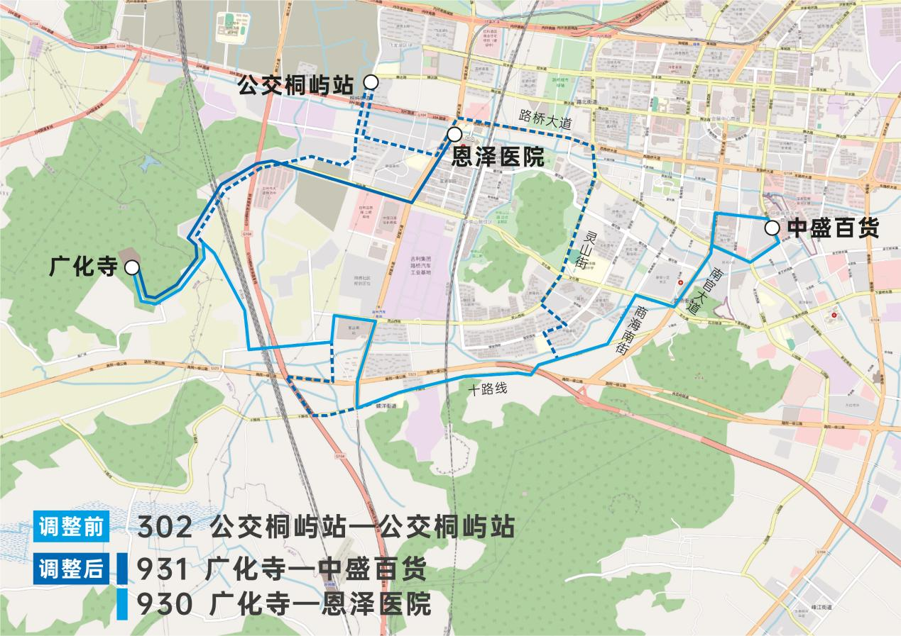 由“公交桐嶼站-經(jīng)螺洋-公交桐嶼站”的環(huán)線變更為930路“廣化寺—恩澤醫(yī)院”和931路“廣化寺—中盛百貨”。
