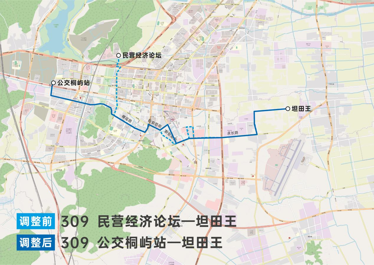 (取消路橋機(jī)場(chǎng)、民航辦公樓、下陳、杰克公司、橫塘、司城、長(zhǎng)浦、上張工業(yè)區(qū)、路橋三中、上馬東、金橋花園、建筑五金市場(chǎng)、十里觀邸、花鳥(niǎo)市場(chǎng)、丁岙、墻里賀村、天和小區(qū)、銘泰苑西、路橋公園、恩澤醫(yī)院南、桐嶼小學(xué)、桐嶼建設(shè)、公交桐嶼站等站點(diǎn)。上述站點(diǎn)的乘客請(qǐng)乘坐309路、996路。)