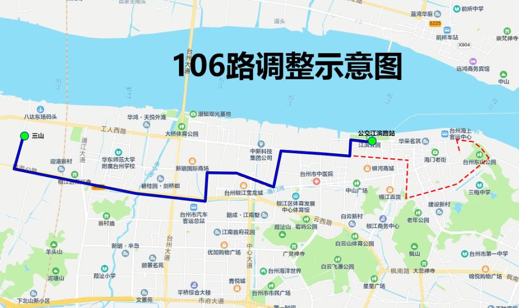 從“三山—東山公園”變更為“三山—公交江濱路站”。