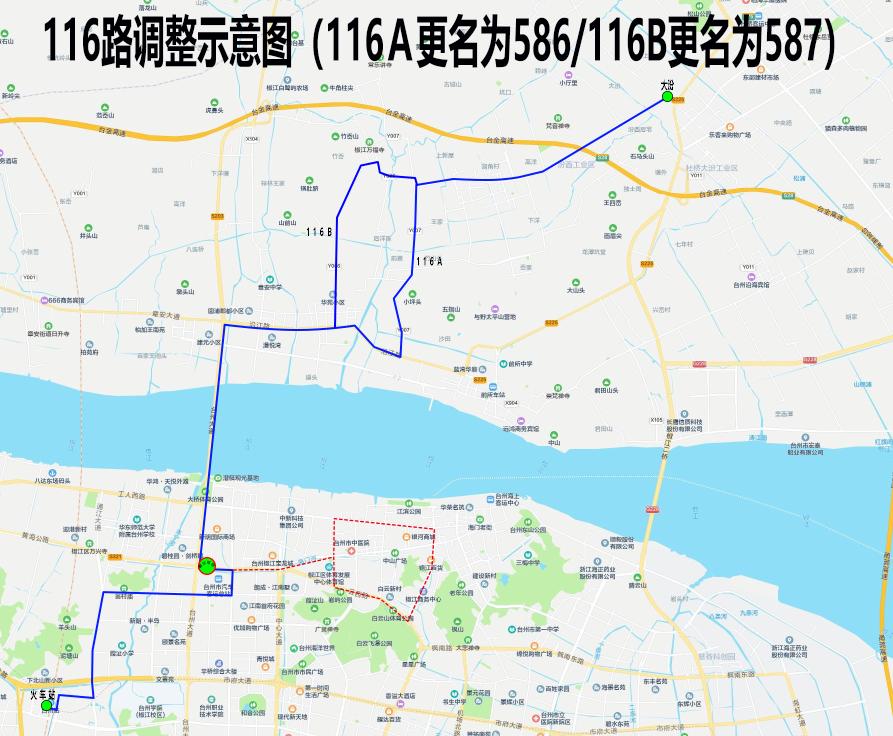 586路/587路:從“大汾—椒江十字馬路”變更為“大汾—火車站”。